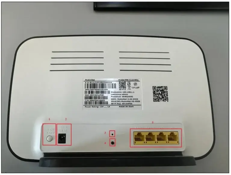 • کلیدها و نشانگرها: کلیدهای ON/OFF، RESET، WPS، WiFi و چراغهای LED وضعیت اتصال و سیگنال